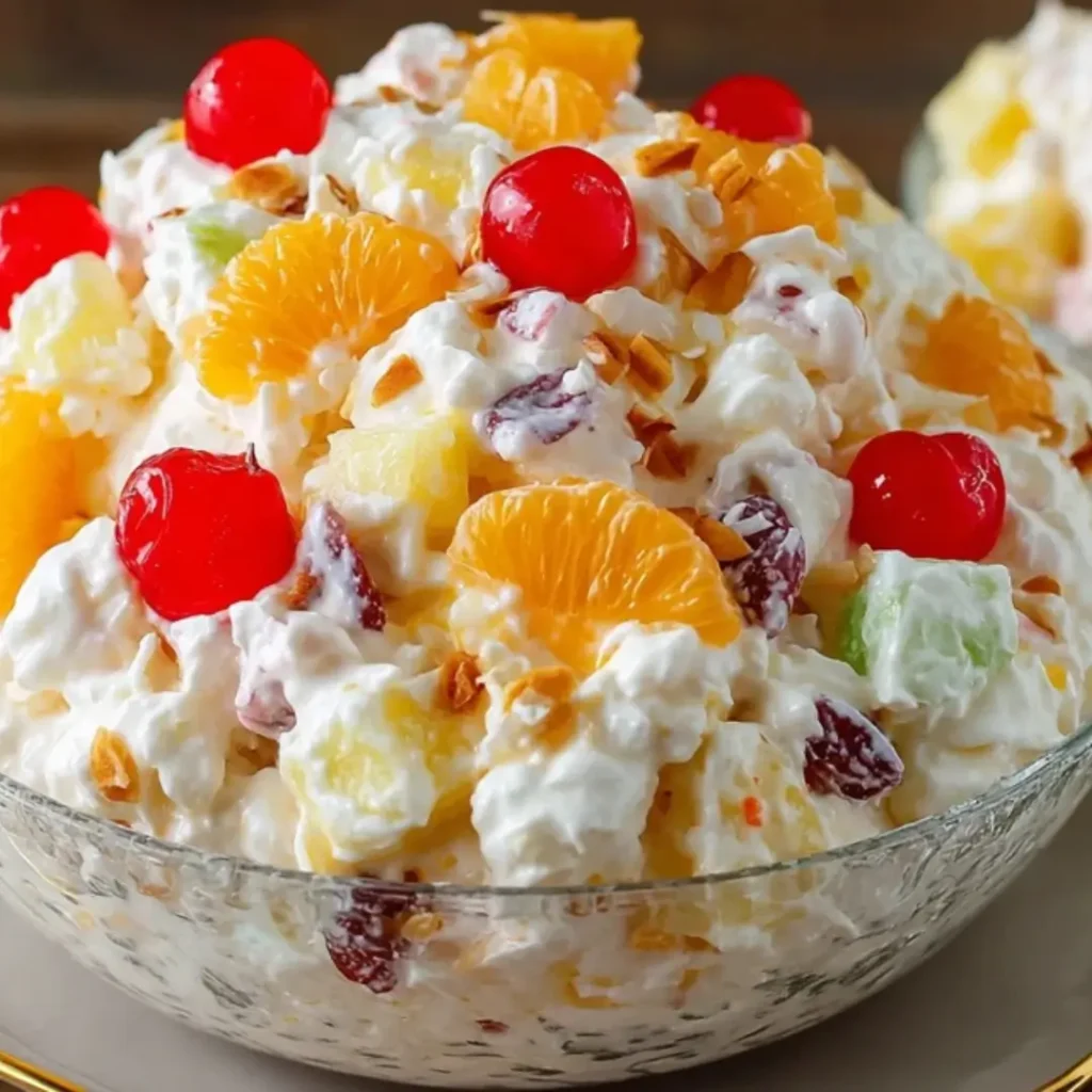 For a comforting finish, a small scoop of classic vanilla bean ice cream or a dollop of freshly whipped cream makes for a truly decadent pairing. The coolness and simplicity of the ice cream beautifully complement the rich, fruity notes of the ambrosia salad.