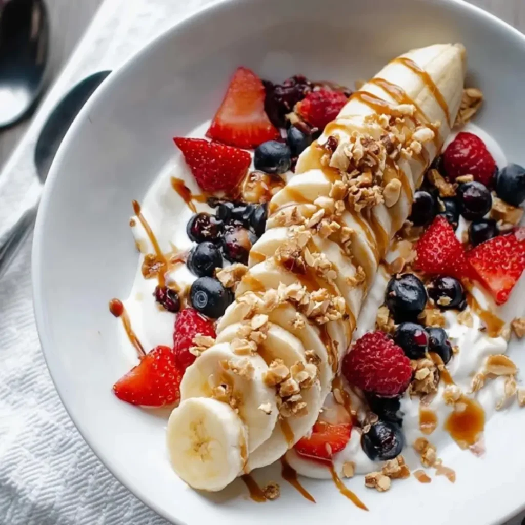 Yes, easily! You can substitute the Greek yogurt with your favorite plant-based yogurt alternative, such as almond, coconut, or soy yogurt. Ensure it’s unsweetened for best control over the final taste of your Breakfast Banana Split.