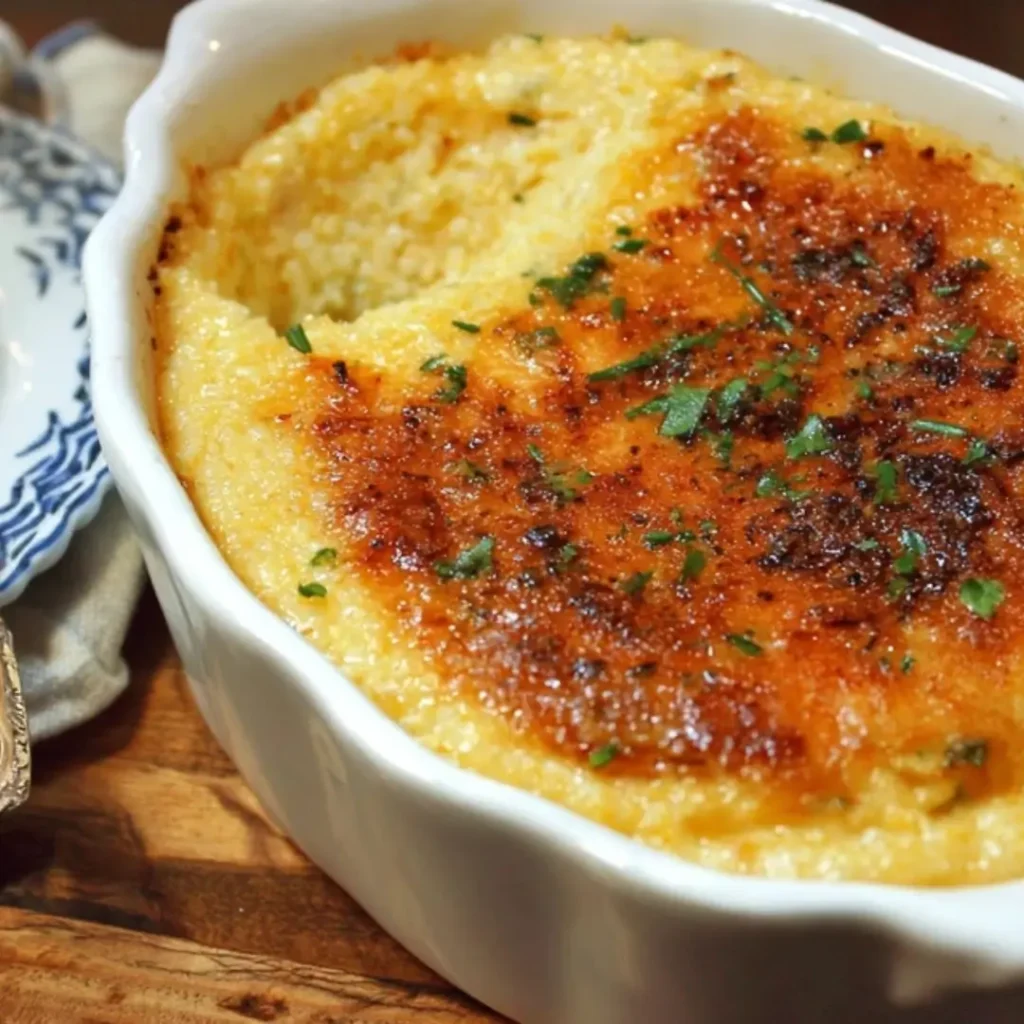 ![A golden brown {{ $('Fetch Recipe Data').first().json["Main Keyword"] }} in a white baking dish, garnished with parsley, with a slice on a plate.](https://recipesdessert.net/wp-content/uploads/2026/01/baked-gouda-cheese-grits.webp)