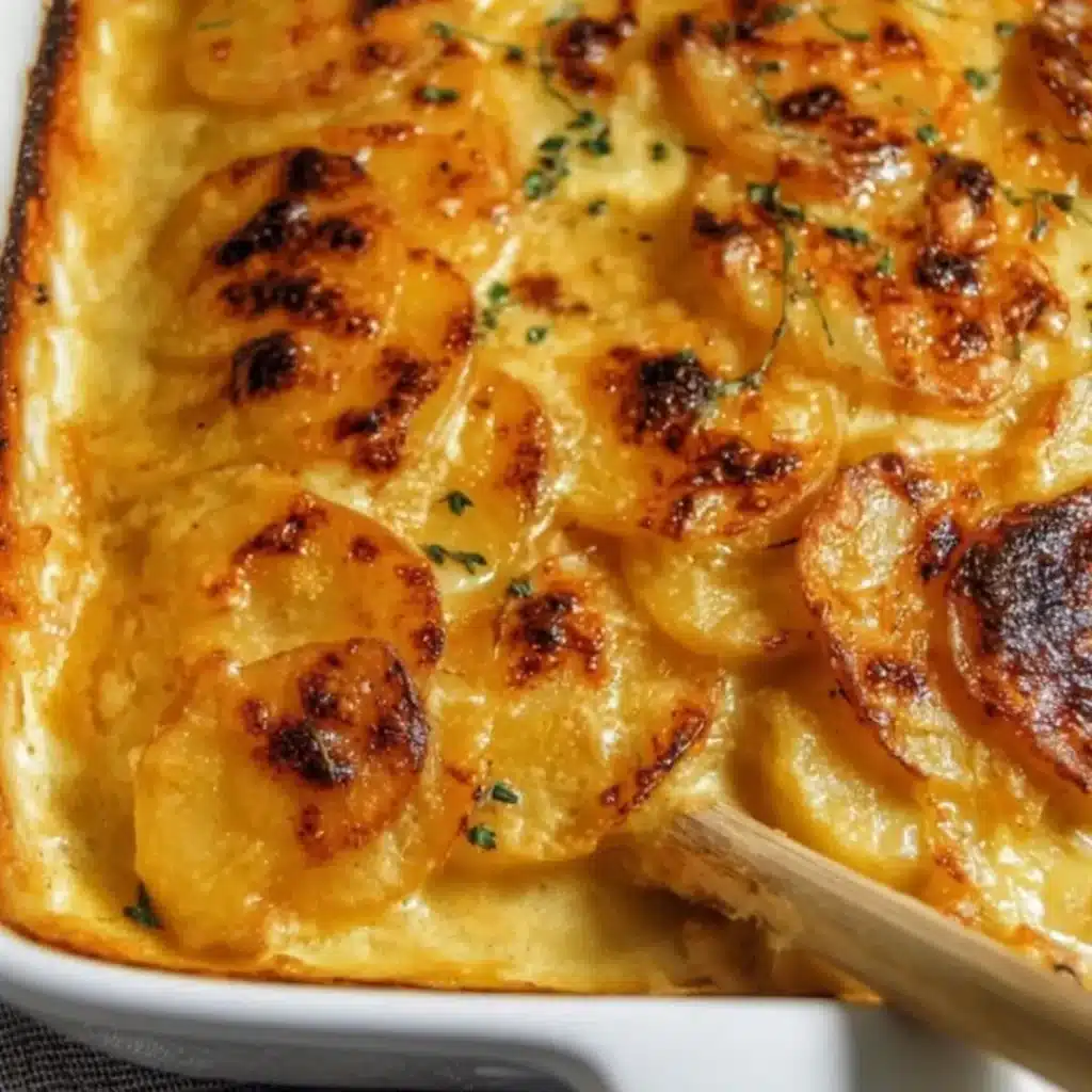 Creamy Gratin Potatoes with a Crispy, Cheesy Topping