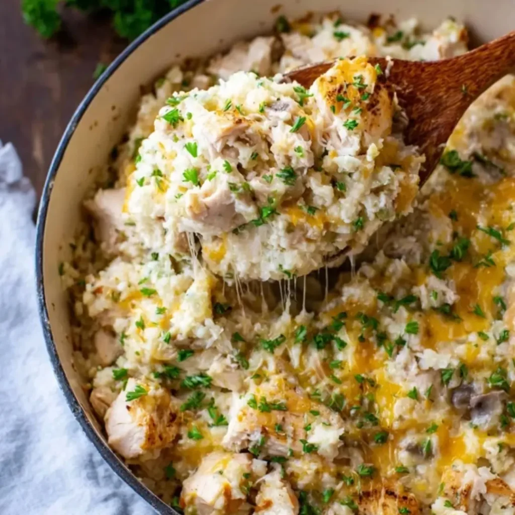 ![A wooden spoon serves a cheesy {{ $('Fetch Recipe Data').first().json["Main Keyword"] }} topped with thyme.](https://recipesdessert.net/wp-content/uploads/2026/04/healthy-chicken-cauliflower-rice-casserole-for-dinner.webp)