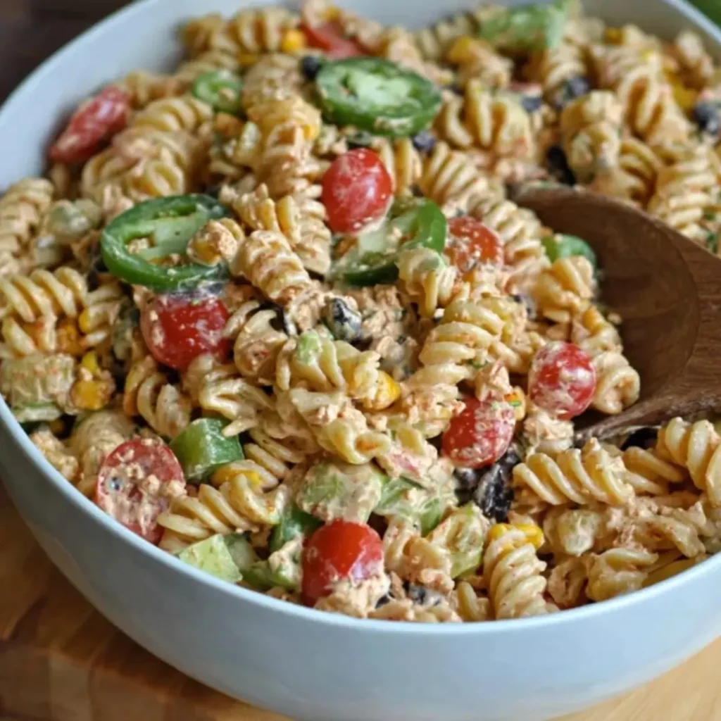 The spice level is mild with standard taco seasoning. If you prefer more heat, add a pinch of cayenne pepper or a dash of your favorite hot sauce to the dressing. For less heat, choose a mild taco seasoning for your creamy taco pasta salad.