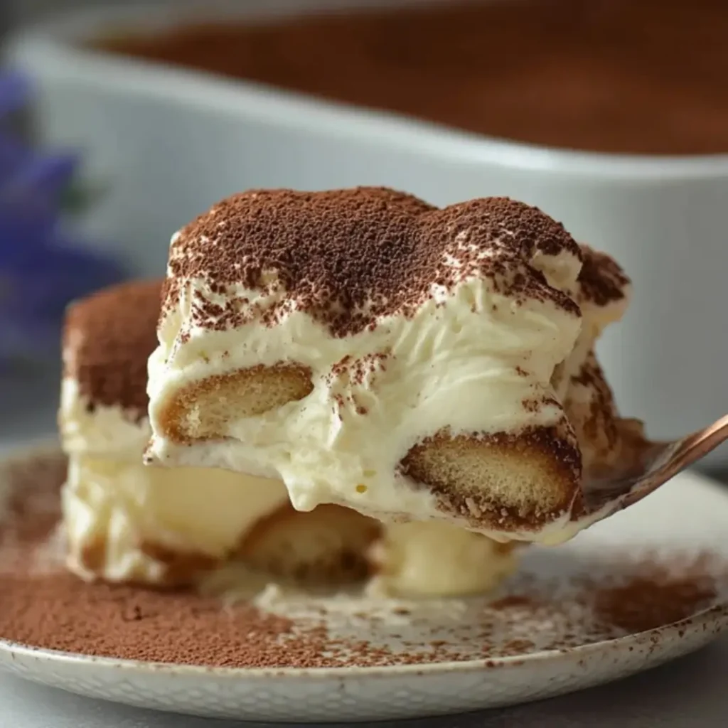 Indulge in this exquisite Creamy Tiramisu, a delightful Italian dessert featuring layers of espresso-soaked ladyfingers, a rich and velvety mascarpone cream, and a dusting of premium cocoa. It’s the perfect balance of bittersweet coffee and luxurious creaminess.