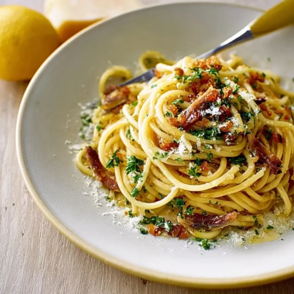Crispy Garlic Anchovy Pasta with Zesty Lemon