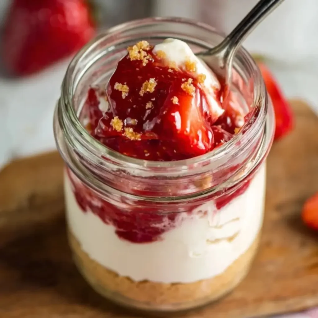 Once assembled, your cheesecake jars should be covered tightly with a lid or plastic wrap and stored in the refrigerator. They will keep beautifully for up to 3-4 days, maintaining their creamy texture and fresh strawberry flavor. I like storing them towards the back of the fridge where the temperature is most consistent.