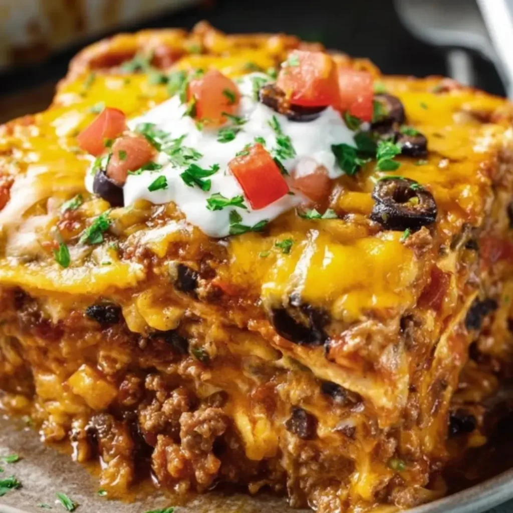 To prevent your Taco Lasagna from drying out, especially if you’re baking it for a longer period or reheating, I always recommend covering it loosely with foil for the first part of the baking time. This traps moisture and ensures the tortillas stay tender and the filling remains juicy.