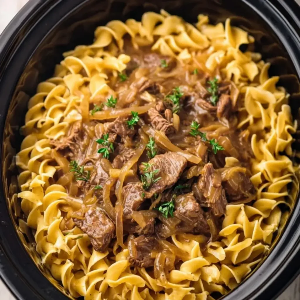 French Onion Beef and Noodles Slow Cooker Comfort Meal
