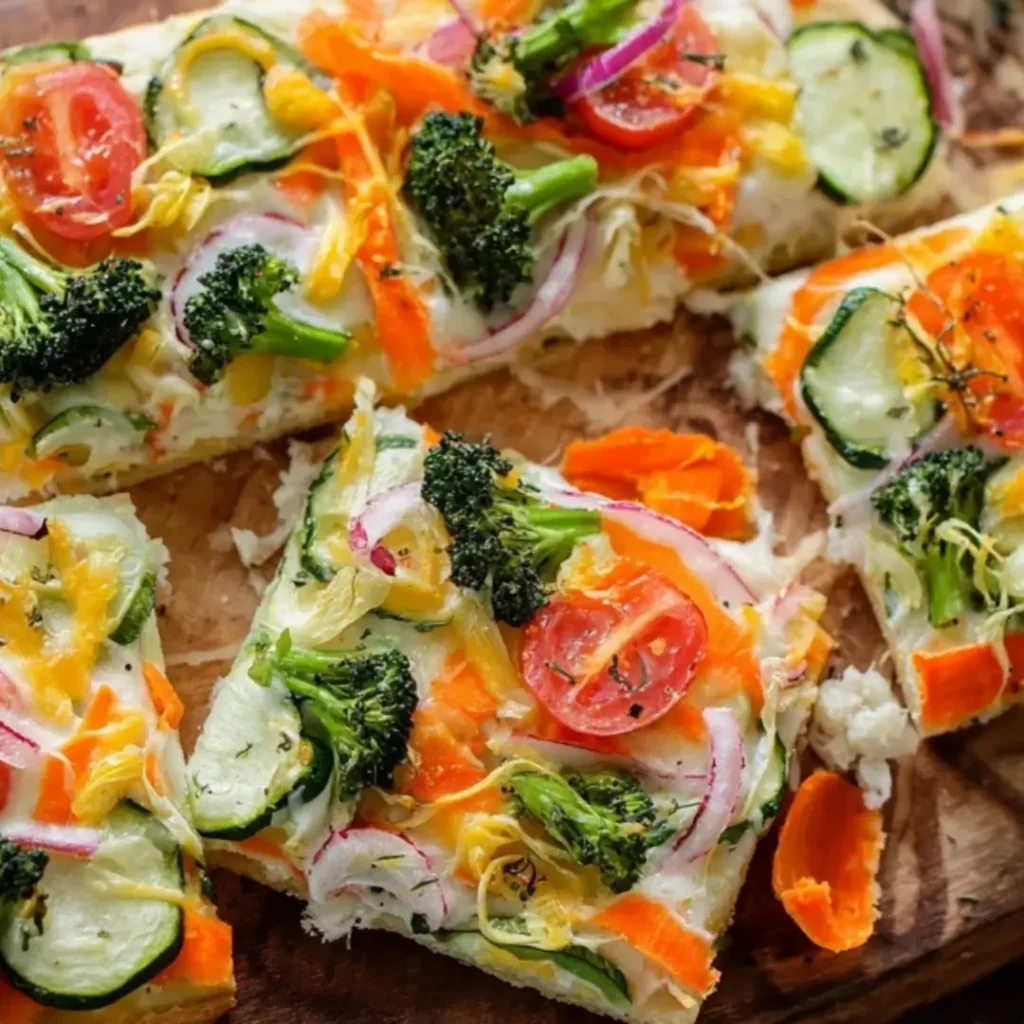 vegetable pizza. It’s a bright, sweet finish to a wholesome meal. - Sparkling Lemonade or Iced Tea: A pitcher of homemade sparkling lemonade or freshly brewed iced tea is the perfect beverage to accompany this garden-fresh pizza, adding a touch of sweetness and refreshment.