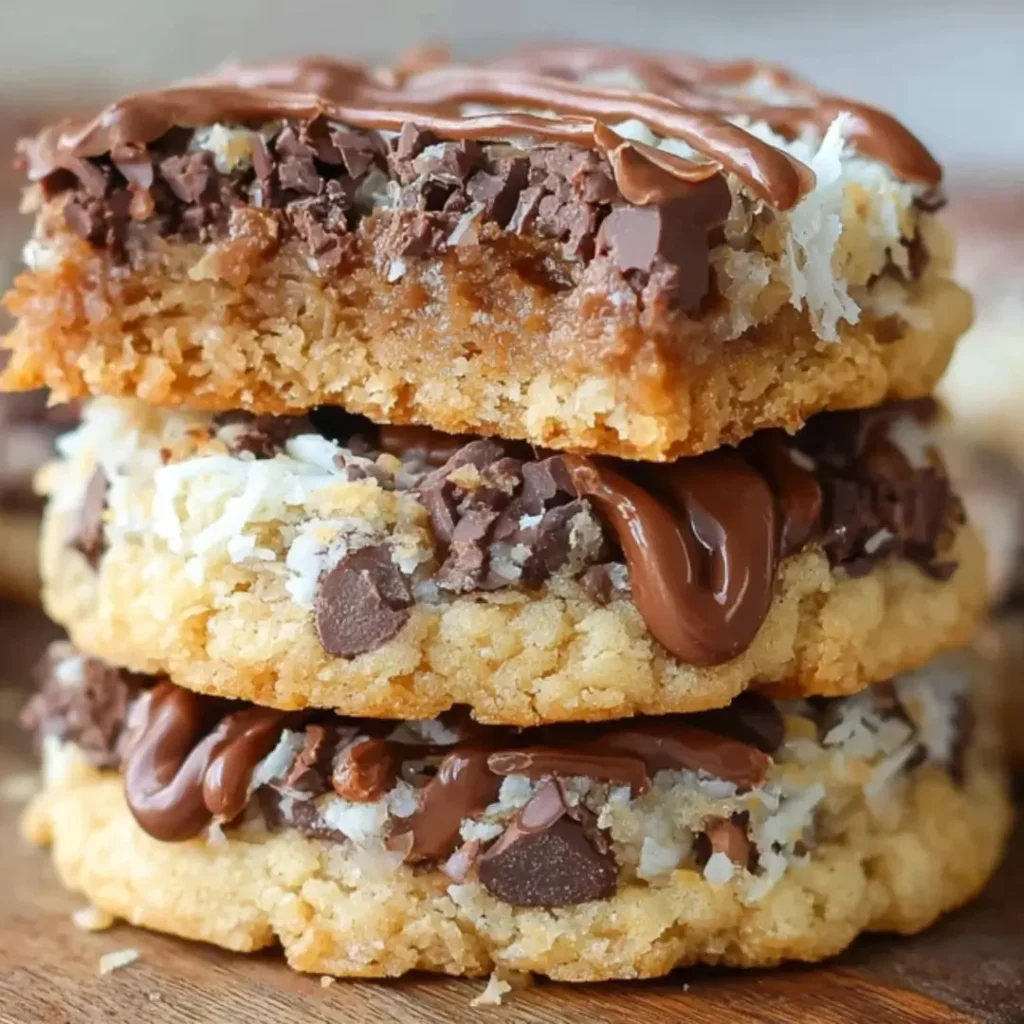 These delightful Easy 7-Layer Cookies are a magical combination of sweet and crunchy, featuring a graham cracker crust topped with chocolate chips, butterscotch chips, coconut, nuts, and a luscious drizzle of sweetened condensed milk, all baked to golden perfection.