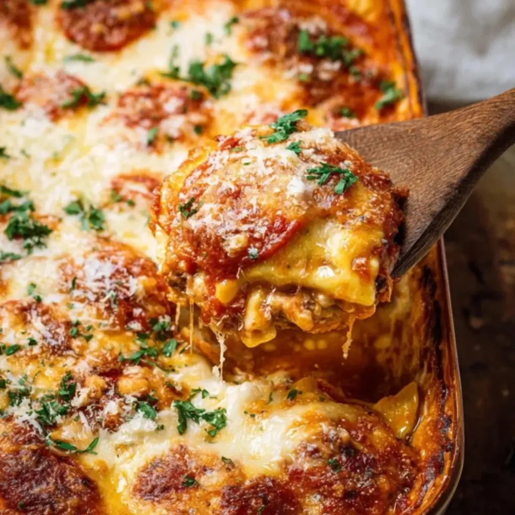 Indulge in a rich, comforting Million Dollar Ravioli Casserole, featuring layers of tender cheese ravioli, a hearty meat sauce, creamy ricotta, and a blanket of melted mozzarella and Parmesan cheese. This baked dish is a true crowd-pleaser and perfect for a family dinner.