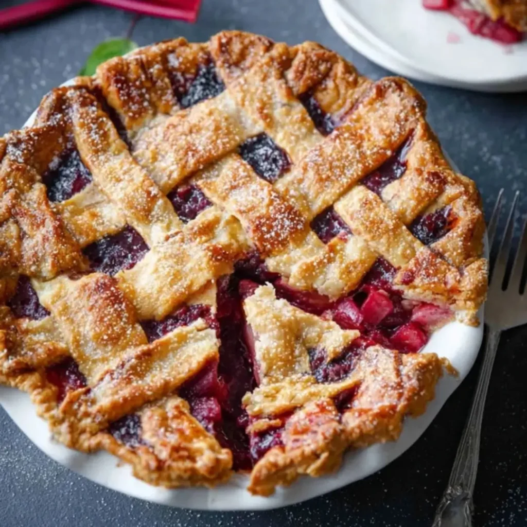 ![A sliced {{ $('Fetch Recipe Data').first().json["Main Keyword"] }} featuring a golden, sugar-sprinkled lattice crust and juicy fruit filling.](https://recipesdessert.net/wp-content/uploads/2026/04/rhubarb-mulberry-pie.webp)