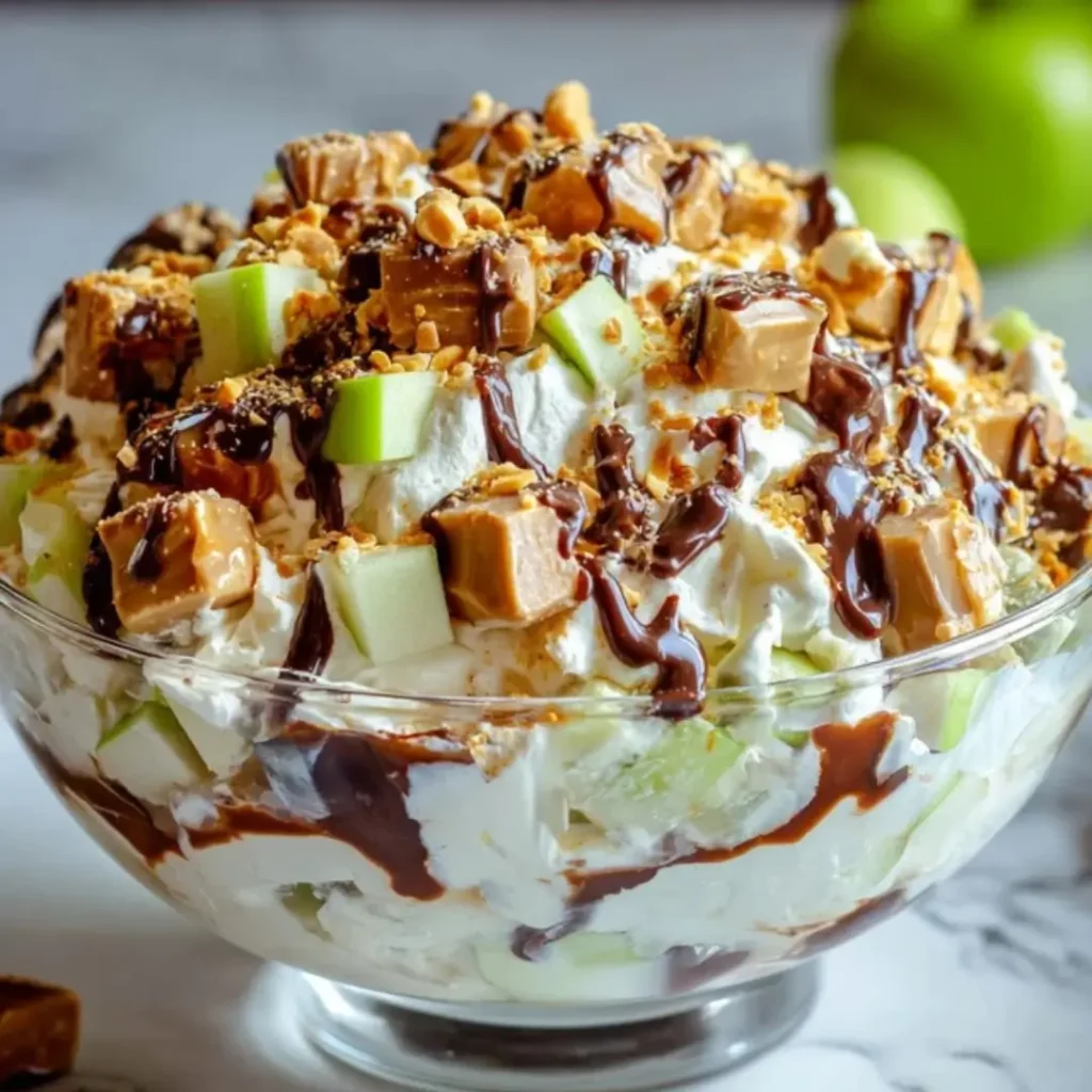 While it’s undeniably a treat, this Snickers Salad isn’t without its brighter side! The Granny Smith apples contribute a healthy dose of fiber and Vitamin C, offering a touch of wholesome goodness amidst the indulgence. It’s a wonderful example of how you can combine delicious flavors with simple, natural ingredients for a satisfying and nourishing dessert experience.
