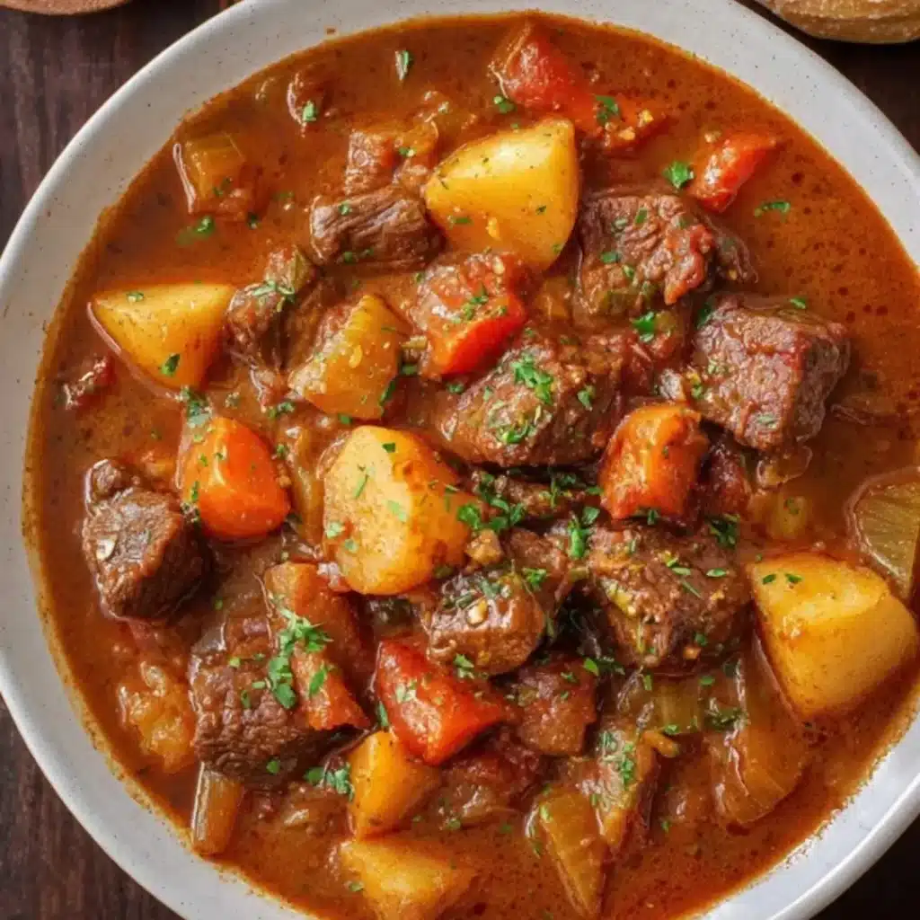 - Ladle the hearty beef stew into bowls. Garnish with fresh chopped parsley, if desired. Serve hot with crusty bread or over mashed potatoes.