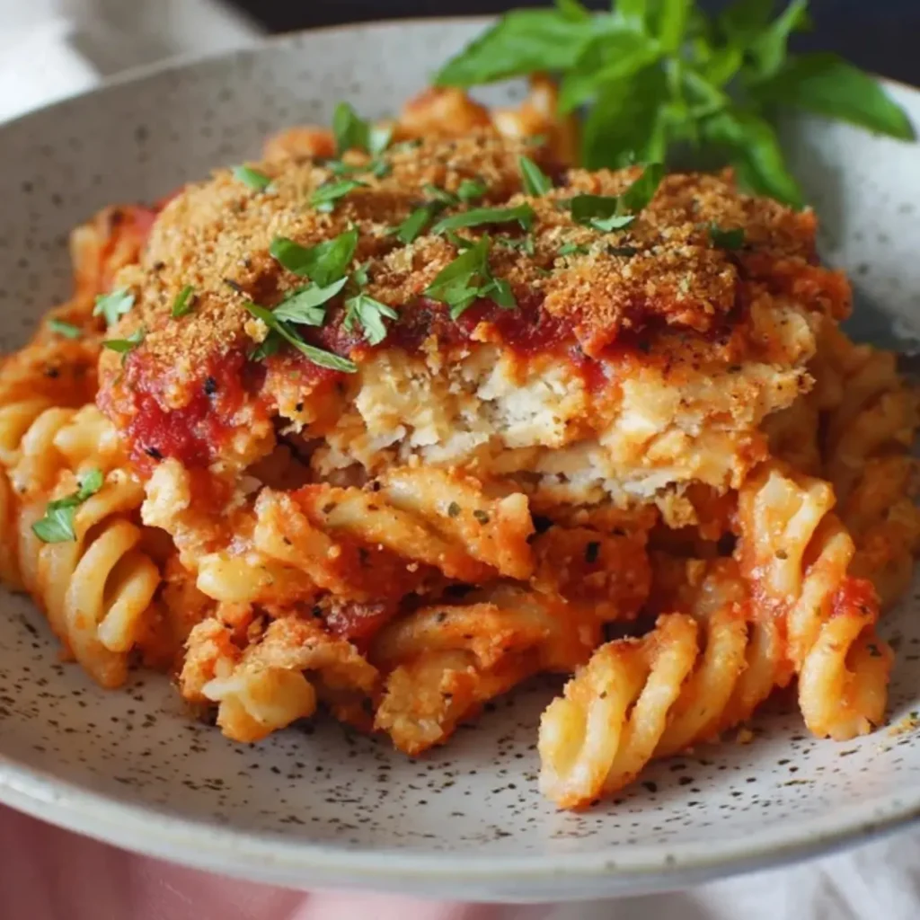 ![A serving of {{ $('Fetch Recipe Data').first().json["Main Keyword"] }} in a dark bowl with breadcrumbs and fresh basil.](https://recipesdessert.net/wp-content/uploads/2026/03/vegan-dump-and-bake-chicken-parmesan-casserole.webp)